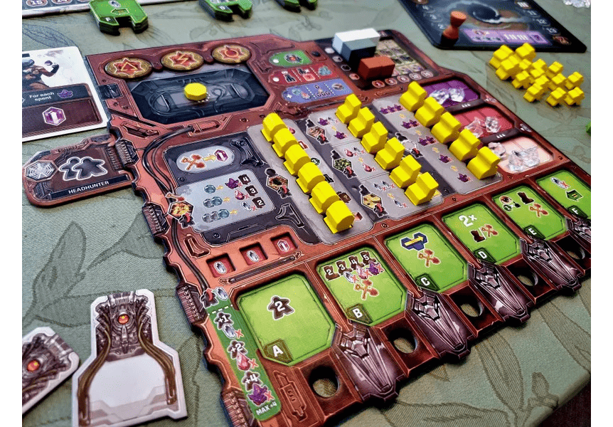 When you use a keycard, you activate the abilities of the keycard itself and the effects of the chosen action box. The chosen combination of keycard and action box will therefore determine what you get to do on your turn: populate the lands, move your followers, explore new regions, and build workshops, vaults, or monuments. During the game, you will improve your tribe by acquiring new keycards, upgrading your action boxes, or collecting ability stones and relics.